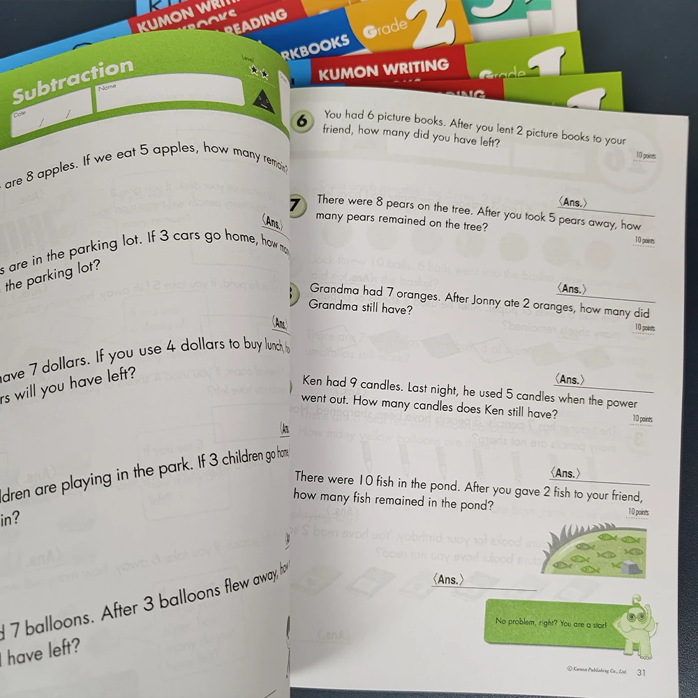 3 Book Kumon Math Workbooks in English Workbook Application Questions For Grade 1-6
